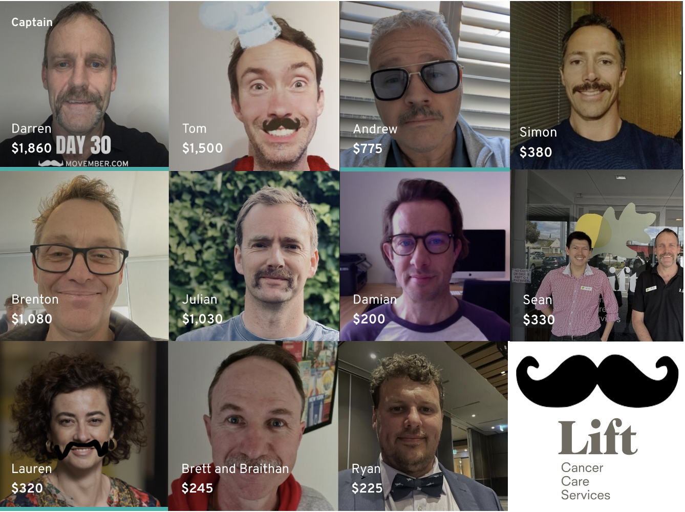 Meet the Lift Cancer Care ‘Mo-vember’ Team! The boys have set a target of rasing $2000 for Men’s Health Awareness and if these pre-prepared photos are anything to go by, we think they’ll have no trouble at all!